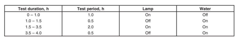 1、如果燈具的使用環境為Wet localtion,則需要做防水測試,下表為防水測試的時間操作列表。