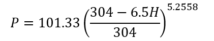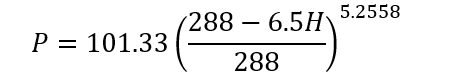氣壓隨高度的變化是比較復(fù)雜的,對(duì)于不同的地理區(qū)域,在同一高度上氣壓隨緯度的變化而變化;對(duì)于同一個(gè)地理區(qū)域,在同一高度上氣壓隨季節(jié)的變化而變化。目前常用兩種常用方法獲得規(guī)定高度下的氣壓值:一是參考標(biāo)準(zhǔn)ISO 2533;二是可參考GJB150.24A,按照相應(yīng)的公式進(jìn)行計(jì)算,即當(dāng)高度H≤20km時(shí),壓力P的計(jì)算公式為